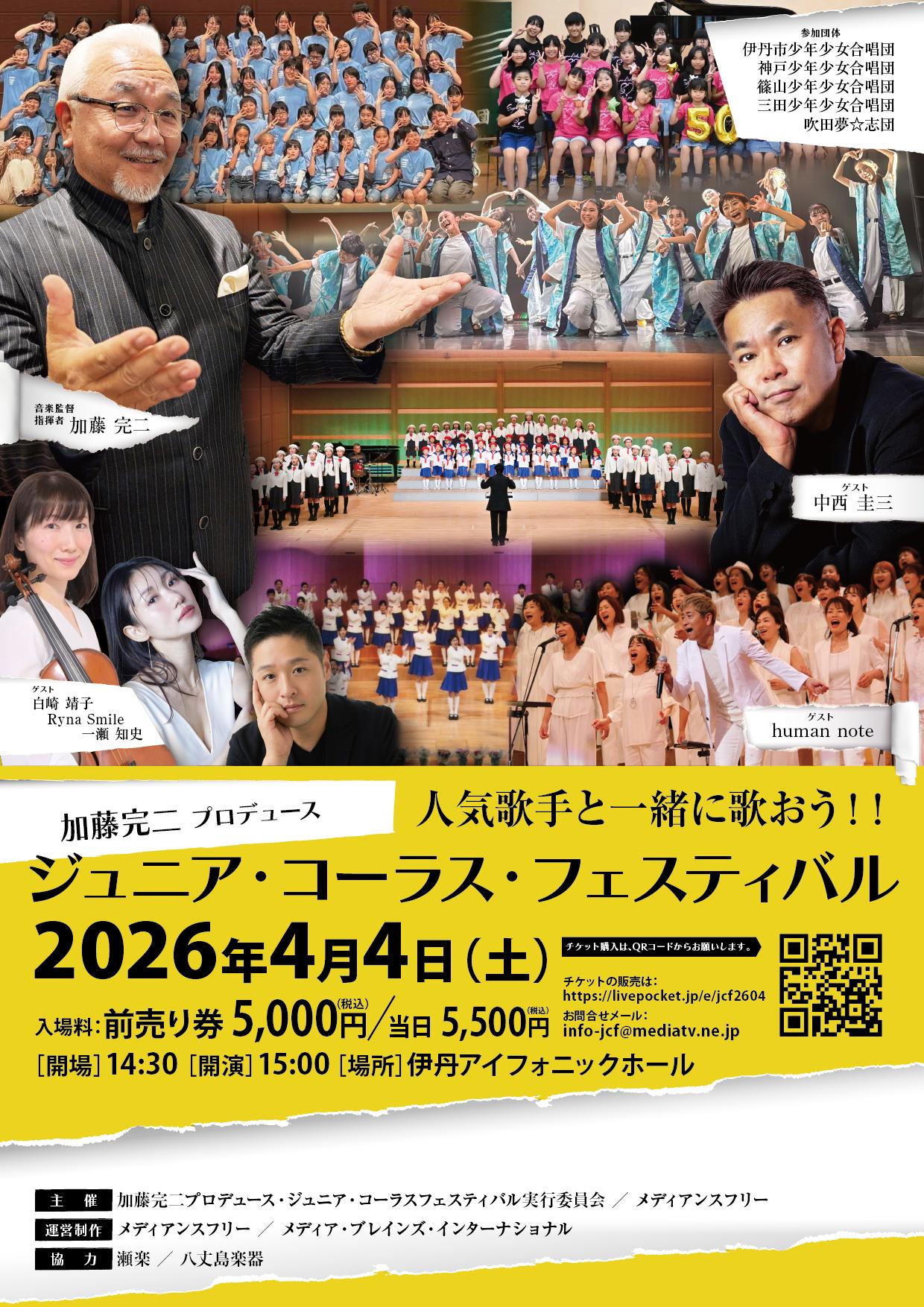 日本を代表する指揮者加藤完二がプロデュース。有名アーティストと合唱団、児童劇団がコラボする「ジュニアコーラスフェス」を主催しています。